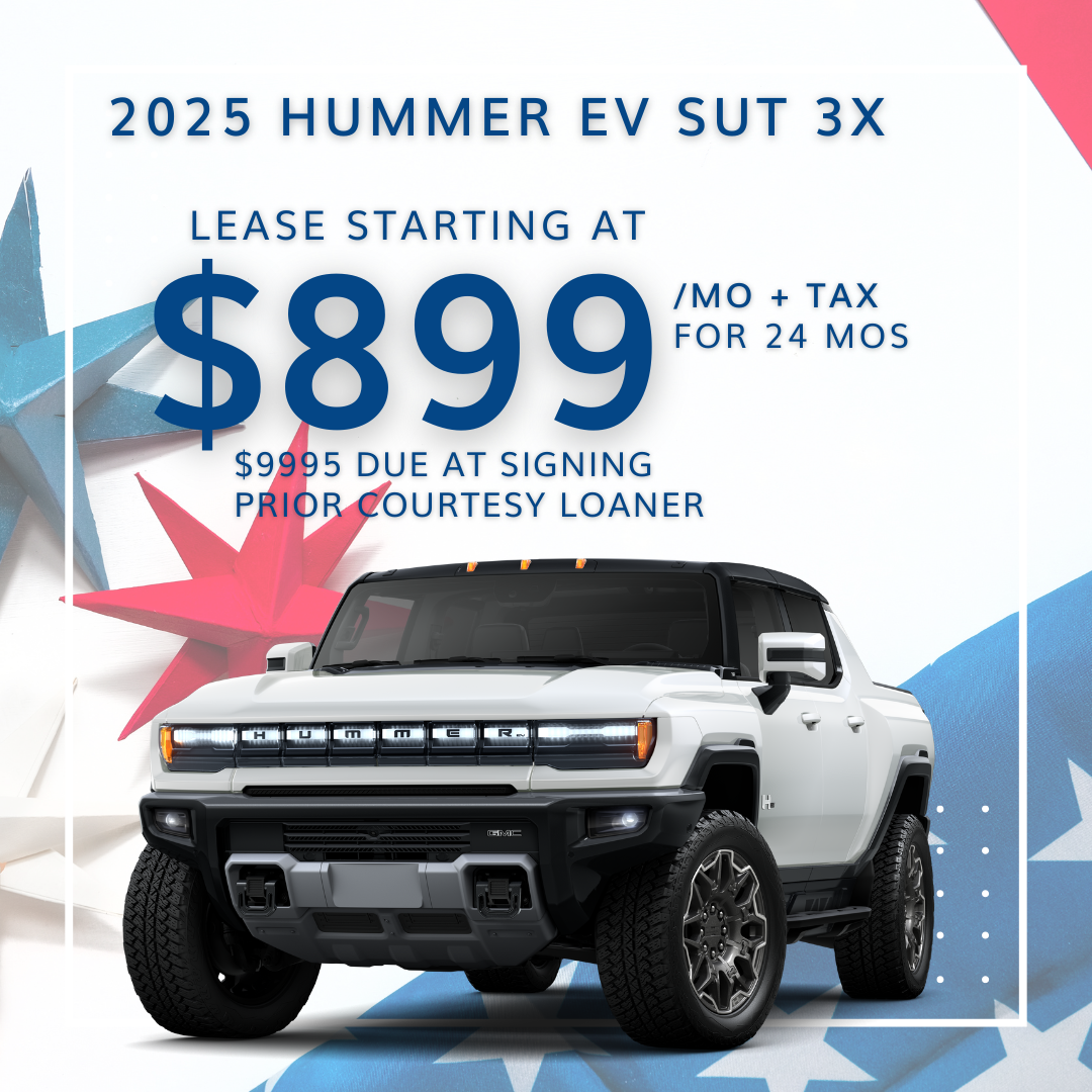 Lease based on 2025 GMC HUMMER EV 3X SUT PRIOR COURTESY LOANER (STOCK # G66296). MSRP of $116,940 - $11589 customer cash down including $899 first monthly payment & $695 acquisition fee, plus taxes, titles, license and documentary service fees. No security deposit required for Tier 1. Lessee is responsible for $.25 per mile over 10,000 miles/year, excess wear, and a $495 termination fee. Offer Expires 03/04/2026. ODOMETER - 1186 MILES