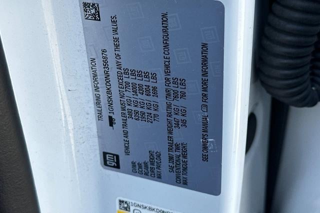 CARFAX One-Owner. Summit White 2022 Chevrolet Suburban LS 4WD 10-Speed Automatic with Overdrive EcoTec3 5.3L V8 NON-SMOKER, Backup Camera, Bluetooth®, Alloy Wheels, Aluminum Wheels, Light Package, Power Mirror Package, Power Package, Remote Start, Tow Package, Trailer Package, Suburban LS, 4D Sport Utility, EcoTec3 5.3L V8, 10-Speed Automatic with Overdrive, 4WD, Summit White, Jet Black w/Premium Cloth Seat Trim, 1st & 2nd Row Color-Keyed Carpeted Floor Mats, 3.23 Rear Axle Ratio, 3rd row seats: split-bench, 4-Wheel Disc Brakes, 6 Speakers, ABS brakes, Air Conditioning, Alloy wheels, AM/FM radio: SiriusXM with 360L, Apple CarPlay/Android Auto, Auto High-beam Headlights, Automatic Stop/Start, Automatic temperature control, Black Name Plates (LPO), Black Roof Rack Cross Rails, Brake assist, Bumpers: body-color, Color-Keyed Carpeting Floor Covering, Compass, Delay-off headlights, Driver & Front Outboard Passenger Airbags, Driver Alert Package, Driver door bin, Driver vanity mirror, Dual front impact airbags, Dual front side impact airbags, Electronic Stability Control, Emergency communication system: OnStar and Chevrolet connected services capable, Floor Console w/Storage Area, Four wheel independent suspension, Front & Rear Black Bowtie Emblems (LPO), Front & Rear Park Assist, Front Bucket Seats, Front Center Armrest, Front dual zone A/C, Front reading lights, Fully automatic headlights, Heated door mirrors, Illuminated entry, Lane Change Alert w/Side Blind Zone Alert, Leather steering wheel, Leather-Wrapped Steering Wheel, LED Daytime Running Lamps, License Plate Front Mounting Package, Low tire pressure warning, Not Equipped w/Front & Rear Park Assist, Not Equipped w/Steering Column Lock, Occupant sensing airbag, Outside temperature display, Overhead airbag, Overhead console, Panic alarm, Passenger door bin, Passenger vanity mirror, Power door mirrors, Power driver seat, Power passenger seat, Power steering, Power windows, Preferred Equipment Group 1LS, Premium audio system: Chevrolet Infotainment System 3, Premium Cloth Seat Trim, Premium Smooth Ride Suspension, Radio: Chevrolet Infotainment 3 System, Rain sensing wipers, Rear air conditioning, Rear Cross Traffic Alert, Rear reading lights, Rear seat center armrest, Rear window defroster, Rear window wiper, Remote keyless entry, Remote Start, Roof rack: rails only, Security system, SiriusXM Radio w/360L, Speed control, Speed-sensing steering, Split folding rear seat, Spoiler, Start/Stop System Disable Button, Steering wheel mounted audio controls, Tachometer, Telescoping steering wheel, Tilt steering wheel, Traction control, Trip computer, Variably intermittent wipers, Voltmeter, Wheels: 18 x 8.5 Bright Silver Painted Aluminum, Wheels: 22 Multi-Spoke Gloss Black (LPO) (SRV), Wheels: 22 Steel (LPO).