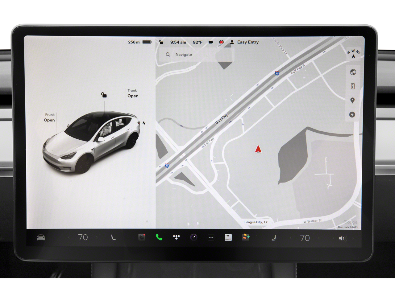 This 2022 Pearl White Multi-Coat Tesla Model Y Long Range AWD is well equipped and includes these features and benefits: Model Y Long Range, AWD, 14 Speakers, 4-Wheel Disc Brakes, 5 Seat Interior, 9.0 Axle Ratio, ABS brakes, Air Conditioning, Alloy wheels, Audio memory, Auto High-beam Headlights, Auto tilt-away steering wheel, Auto-dimming door mirrors, Auto-dimming Rear-View mirror, Automatic temperature control, Brake assist, Bumpers: body-color, Compass, Delay-off headlights, Driver door bin, Driver vanity mirror, Dual front impact airbags, Dual front side impact airbags, Electronic Stability Control, Exterior Parking Camera Rear, Four wheel independent suspension, Front anti-roll bar, Front Bucket Seats, Front Center Armrest, Front dual zone A/C, Front fog lights, Front reading lights, Fully automatic headlights, Genuine wood dashboard insert, Heated door mirrors, Heated front seats, Heated rear seats, Heated steering wheel, HVAC memory, Illuminated entry, Knee airbag, Lane Departure Warning System, Low tire pressure warning, Memory seat, Navigation System, Occupant sensing airbag, Outside temperature display, Overhead airbag, Passenger door bin, Passenger vanity mirror, Power door mirrors, Power driver seat, Power Liftgate, Power passenger seat, Power steering, Power windows, Premium Audio System, Premium Seat Trim, Radio data system, Rain sensing wipers, Rear reading lights, Rear seat center armrest, Rear window defroster, Remote keyless entry, Security system, Speed control, Speed-sensing steering, Split folding rear seat, Steering wheel memory, Steering wheel mounted A/C controls, Steering wheel mounted audio controls, Telescoping steering wheel, Tilt steering wheel, Traction control, Trip computer, Variably intermittent wipers, and Wheels: 19 x 9.5 Gemini. Model Y Long Range, AWD.