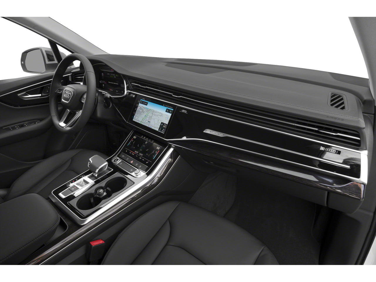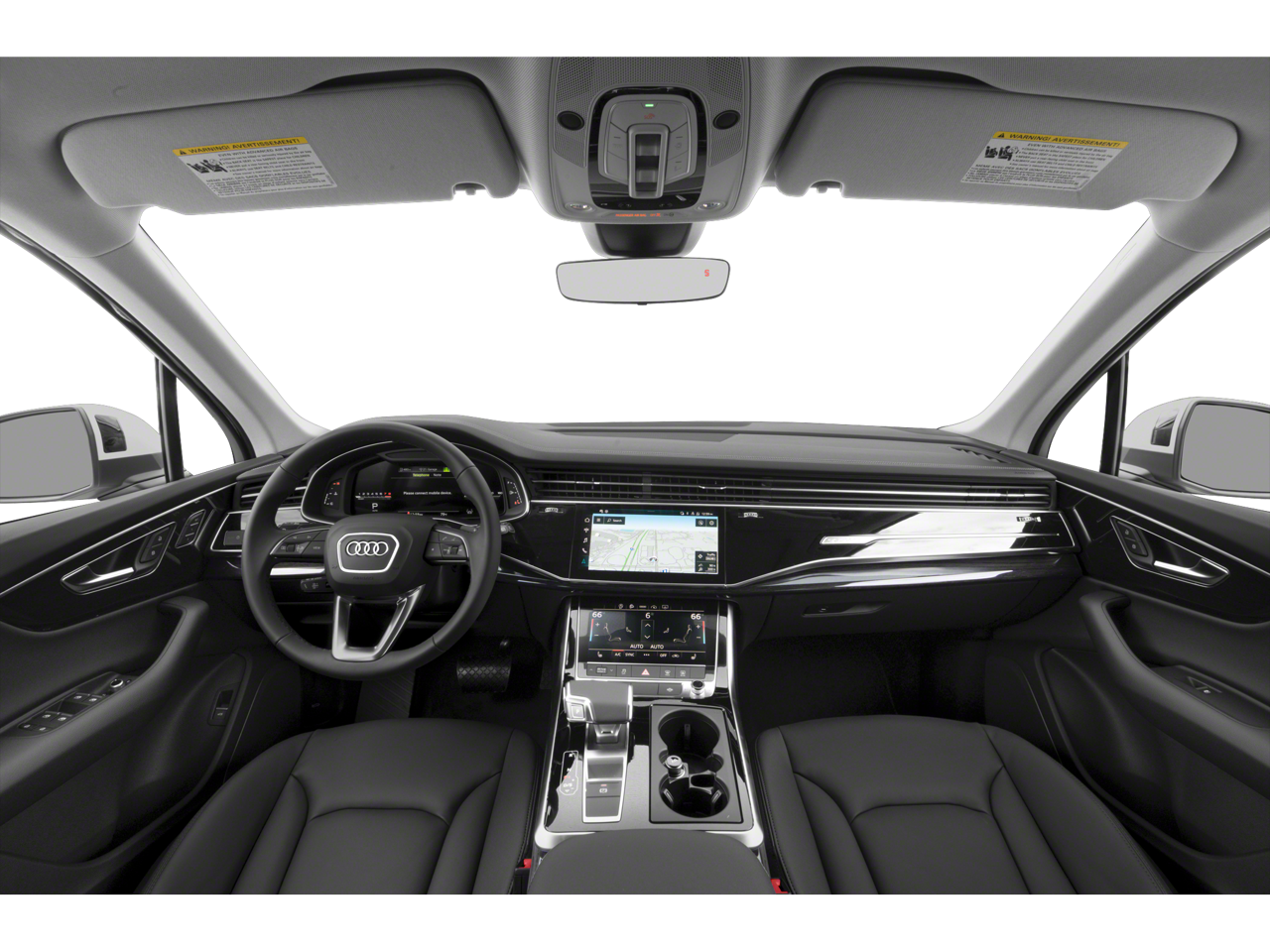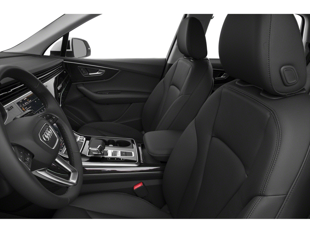 This 2023 Carrara White Audi Q7 55 Premium Plus AWD is well equipped and includes these features and benefits: Q7 55 Premium Plus quattro, quattro, 10 Speakers, 3.204 Axle Ratio, 3rd row seats: bench, 4-Wheel Disc Brakes, ABS brakes, Air Conditioning, Alloy wheels, AM/FM radio: SiriusXM w/ 360L, Auto High-beam Headlights, Auto-dimming door mirrors, Auto-dimming Rear-View mirror, Automatic temperature control, Brake assist, Bumpers: body-color, Compass, Delay-off headlights, Driver door bin, Driver vanity mirror, Dual front impact airbags, Dual front side impact airbags, Electronic Stability Control, Emergency communication system: Audi connect CARE, Exterior Parking Camera Rear, Four wheel independent suspension, Front anti-roll bar, Front Bucket Seats, Front Center Armrest, Front dual zone A/C, Front fog lights, Front reading lights, Fully automatic headlights, Garage door transmitter: HomeLink, Genuine wood door panel insert, Heated door mirrors, Heated Front Bucket Seats, Heated front seats, Illuminated entry, Leather Seating Surfaces, Leather Shift Knob, Leather steering wheel, Low tire pressure warning, Memory seat, Navigation system: Audi MMI Navigation plus with Touch Response, Occupant sensing airbag, Outside temperature display, Overhead airbag, Overhead console, Panic alarm, Passenger door bin, Passenger vanity mirror, Power door mirrors, Power driver seat, Power Liftgate, Power moonroof: Panoramic, Power passenger seat, Power steering, Power windows, Radio data system, Radio: Audi Sound System, Rain sensing wipers, Rear air conditioning, Rear anti-roll bar, Rear fog lights, Rear reading lights, Rear seat center armrest, Rear side impact airbag, Rear window defroster, Rear window wiper, Reclining 3rd row seat, Remote keyless entry, Roof rack: rails only, Security system, Speed control, Speed-sensing steering, Split folding rear seat, Spoiler, Steering wheel memory, Steering wheel mounted audio controls, Tachometer, Telescoping steering wheel, Tilt steering wheel, Traction control, Trip computer, Turn signal indicator mirrors, Variably intermittent wipers, and Wheels: 19 5-Arm-Star Design. Q7 55 Premium Plus quattro, quattro.