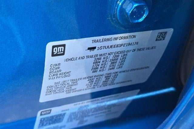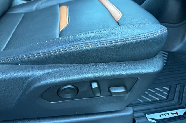 CARFAX One-Owner. Clean CARFAX. Dynamic Blue Metallic 2023 GMC Sierra 1500 AT4 4WD 10-Speed Automatic 3.0L I6 CARFAX ONE OWNER, NON-SMOKER, Leather Seats, Backup Camera, Bluetooth®, Alloy Wheels, Aluminum Wheels, Climate Package, Heat Package, Light Package, Power Mirror Package, Power Package, Remote Start, Tow Package, Trailer Package, Sierra 1500 AT4, 4D Crew Cab, 3.0L I6, 10-Speed Automatic, 4WD, Dynamic Blue Metallic, Jet Black w/Kalahari Accents w/Perforated Front Leather Seat Trim, 10-Way Power Driver Seat Adjuster w/Lumbar, 10-Way Power Passenger Seat Adjuster w/Lumbar, 120-Volt Bed Mounted Power Outlet, 120-Volt Instrument Panel Power Outlet, 18" x 8.5" Machined Aluminum Wheels, 2 Charge/Data USB Ports Inside Center Console, 2 Type-C Charge-Only Rear USB Ports, 2 USB Ports, 220 Amp Alternator, 3.23 Rear Axle Ratio, 4-Wheel Disc Brakes, 7 Speakers, ABS brakes, Adaptive Cruise Control, Air Conditioning, Alloy wheels, AM/FM radio, Apple CarPlay/Android Auto, AT4 Preferred Package, Auto High-beam Headlights, Auto-dimming door mirrors, Auto-dimming Rear-View mirror, Auto-Locking Rear Differential, Automatic Emergency Braking, Automatic temperature control, Black Chrome Header & Grille Insert Bars, Block heater, Brake assist, Buckle to Drive, Bumpers: body-color, Color-Keyed Carpeting Floor Covering, Compass, Deep-Tinted Glass, Delay-off headlights, Driver door bin, Driver Memory, Driver vanity mirror, Dual front impact airbags, Dual front side impact airbags, Electric Rear-Window Defogger, Electrical Steering Column Lock, Electronic Stability Control, Emergency communication system: OnStar and GMC connected services capable, Engine Block Heater, Floor-Mounted Center Console, Following Distance Indicator, Forward Collision Alert, Front Bucket Seats, Front Center Armrest, Front dual zone A/C, Front fog lights, Front License Plate Kit, Front Pedestrian Braking, Front Prem Floor Liners w/Removable Carpet Insert, Front Rainsensing Wipers, Front reading lights, Front wheel independent suspension, Fully automatic headlights, GMC Connected Access Capable, HD Surround Vision, Heated 2nd Row Outboard Seats, Heated door mirrors, Heated Driver & Front Outboard Passenger Seating, Heated front seats, Heated rear seats, Heated steering wheel, Heavy-Duty Air Filter, Hill Descent Control, Hitch Guidance, Hitch Guidance w/Hitch View, Illuminated entry, In-Vehicle Trailering App, Integrated Trailer Brake Controller, IntelliBeam Automatic High Beam On/Off, Keyless Open & Start, Lane Keep Assist w/Lane Departure Warning, LED Cargo Area Lighting, Low tire pressure warning, Memory seat, Navigation System, Not Equipped w/Steering Column Lock, Occupant sensing airbag, Off-Road Suspension, OnStar & GMC Connected Services Capable, Outside temperature display, Overhead airbag, Overhead console, Panic alarm, Passenger door bin, Passenger vanity mirror, Perforated Front Leather Seat Trim, Perimeter Lighting, Power Door Locks, Power door mirrors, Power driver seat, Power Front Passenger Windows w/Express Up/Down, Power Front Windows w/Driver Express Up/Down, Power passenger seat, Power Rake & Telescoping Steering Column, Power Rear Windows w/Express Down, Power Sliding Rear Window w/Rear Defogger, Power steering, Power windows, Preferred Equipment Group 4SB, Premium audio system: GMC Infotainment System, Premium Bose 7-Speaker Sound System, Push Button Start, Radio data system, Radio: Premium GMC Infotainment Audio System, Rain sensing wipers, Rear Cross Traffic Braking, Rear Pedestrian Detection, Rear Prem Floor Liners w/Removable Carpet Insert, Rear reading lights, Rear seat center armrest, Rear step bumper, Rear Wheelhouse Liners, Rear window defroster, Red Recovery Hooks, Remote keyless entry, Remote Vehicle Starter System, Safety Alert Seat, Security system, SiriusXM w/360L, Speed control, Speed-sensing steering, Split folding rear seat, Spray-On Pickup Bed Liner w/AT4 Logo, Steering Wheel Audio Controls, Steering wheel mounted audio controls, Tacho