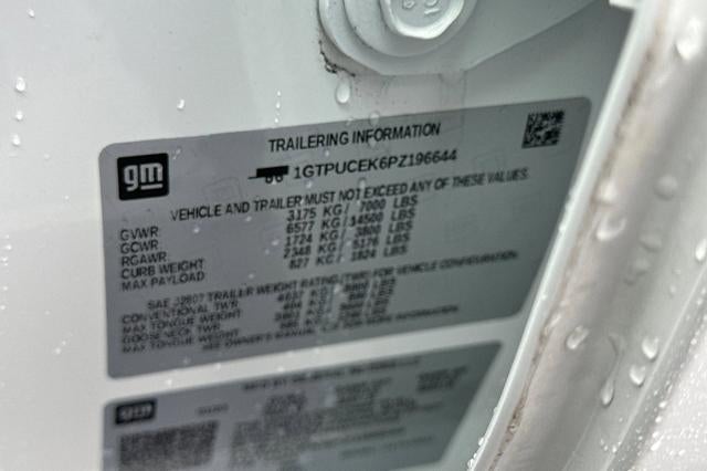 CARFAX One-Owner. Clean CARFAX. Summit White 2023 GMC Sierra 1500 Elevation 4WD 8-Speed Automatic 2.7L I4 Turbocharged DOHC 16V LEV3-ULEV50 310hp CARFAX ONE OWNER, NON-SMOKER, Backup Camera, Bluetooth®, Alloy Wheels, Aluminum Wheels, Climate Package, Heat Package, Light Package, Power Mirror Package, Power Package, Remote Start, Tow Package, Trailer Package, Sierra 1500 Elevation, 4D Crew Cab, 2.7L I4 Turbocharged DOHC 16V LEV3-ULEV50 310hp, 8-Speed Automatic, 4WD, Summit White, Jet Black w/Cloth Seat Trim, 10-Way Power Driver Seat Adjuster w/Lumbar, 120-Volt Bed Mounted Power Outlet, 120-Volt Instrument Panel Power Outlet, 2 Charge/Data USB Ports, 2 Type-C Charge-Only Rear USB Ports, 220 Amp Alternator, 3.42 Rear Axle Ratio w/Max Trailering Pkg, 4-Way Manual Passenger Seat Adjuster, 4-Wheel Disc Brakes, 6 Speakers, 6-Speaker Audio System Feature, ABS brakes, Air Conditioning, Alloy wheels, AM/FM radio, Apple CarPlay/Android Auto, Auto High-beam Headlights, Auto-Locking Rear Differential, Automatic Emergency Braking, Automatic temperature control, Body Color Header w/Gloss Black Mesh Grille Bars, Brake assist, Buckle to Drive, Bumpers: body-color, Cloth Rear Seat w/Storage Package, Cloth Seat Trim, Color-Keyed Carpeting Floor Covering, Compass, Deep-Tinted Glass, Delay-off headlights, Driver door bin, Driver vanity mirror, Dual front impact airbags, Dual front side impact airbags, Electric Rear-Window Defogger, Electrical Steering Column Lock, Electronic Stability Control, Emergency communication system: OnStar and GMC connected services capable, Following Distance Indicator, Forward Collision Alert, Front 40/20/40 Split-Bench Seat, Front Center Armrest w/Storage, Front dual zone A/C, Front fog lights, Front Frame-Mounted Black Recovery Hooks, Front License Plate Kit, Front Pedestrian Braking, Front reading lights, Front Rubberized-Vinyl Floor Mats, Front wheel independent suspension, Fully automatic headlights, GMC Connected Access Capable, HD Rear Vision Camera, Heated door mirrors, Heated Driver & Front Outboard Passenger Seating, Heated front seats, Heated steering wheel, High Capacity Suspension Package, Hitch Guidance, Illuminated entry, IntelliBeam Automatic High Beam On/Off, Keyless Open & Start, Lane Keep Assist w/Lane Departure Warning, LED Cargo Area Lighting, Low tire pressure warning, Manual Tilt-Wheel & Telescoping Steering Column, Navigation System, Not Equipped w/Steering Column Lock, Not Equipped with GMC MultiPro Tailgate, Occupant sensing airbag, OnStar & GMC Connected Services Capable, Outside temperature display, Overhead airbag, Overhead console, Panic alarm, Passenger door bin, Passenger vanity mirror, Power Door Locks, Power door mirrors, Power driver seat, Power Front Windows w/Driver Express Up/Down, Power Front Windows w/Passenger Express Down, Power Rear Windows w/Express Down, Power steering, Power windows, Preferred Equipment Group 3SB, Premium audio system: GMC Infotainment System, Push Button Start, Radio data system, Radio: Premium GMC Infotainment Audio System, Rear reading lights, Rear Rubberized-Vinyl Floor Mats, Rear seat center armrest, Rear step bumper, Rear window defroster, Remote keyless entry, Remote Vehicle Starter System, Security system, SiriusXM w/360L, Speed control, Speed-sensing steering, Split folding rear seat, Standard Tailgate, Steering Wheel Audio Controls, Steering wheel mounted audio controls, Tachometer, Telescoping steering wheel, Theft Deterrent System (Unauthorized Entry), Tilt steering wheel, Traction control, Trailering Package, Trip computer, Variably intermittent wipers, Voltmeter, Wheels: 20 x 9 High Gloss Black Painted Aluminum, Wi-Fi Hotspot Capable, Wireless Phone Projection.