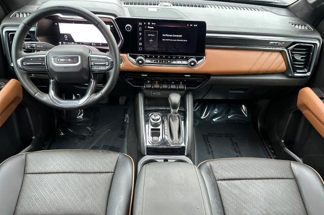 New Price! CARFAX One-Owner. Clean CARFAX. Onyx Black 2024 GMC Canyon AT4 4WD 8-Speed Automatic 2.7L I4 Turbocharged DOHC 16V LEV3-SULEV30 310hp CARFAX ONE OWNER, NON-SMOKER, Premium Sound Package, Leather Seats, Backup Camera, Bluetooth®, Moonroof, Alloy Wheels, Aluminum Wheels, Audio Package, Climate Package, Heat Package, Light Package, Power Mirror Package, Power Package, Remote Start, Sound Package, Sunroof/Moonroof, Tow Package, Trailer Package, Canyon AT4, 4D Crew Cab, 2.7L I4 Turbocharged DOHC 16V LEV3-SULEV30 310hp, 8-Speed Automatic, 4WD, Onyx Black, Jet Black/Timber w/Perforated Leather-Appointed Seat Trim, 120-Volt Bed Mounted Power Outlet, 2 1st Row USB Charge/Data Ports, 2 Rear USB Ports in Center Console (Charge-Only), 220 Amps Alternator, 3.42 Rear Axle Ratio, 4-Way Manual Front Passenger Seat Adjuster, 4-Wheel Disc Brakes, 6 Speakers, 6-Speaker Audio System Feature, 6-Way Power Passenger Seat Adjuster, 8-Way Power Driver Seat Adjuster, ABS brakes, Adaptive Cruise Control, Air Conditioning, Alloy wheels, AM/FM radio, Apple CarPlay/Android Auto, AT4 Premium Package, Auto High-beam Headlights, Auto-dimming Rear-View mirror, Automatic Emergency Braking, Automatic Locking Rear Differential, Automatic Stop/Start, Automatic temperature control, Blind Zone Steering Assist w/Trailering, Brake assist, Bumpers: body-color, Canyon Pro Safety, Canyon Safety Plus Package, Cloth/CoreTec Seat Trim, Compass, Delay-off headlights, Driver & Front Passenger Illuminated Visors, Driver & Front Passenger Ventilated Seats, Driver door bin, Driver Memory, Driver Mode Selector, Driver Seatback Map Pocket, Driver vanity mirror, Dual front impact airbags, Dual front side impact airbags, Dual-Zone Automatic Air Conditioning, Electronic Stability Control, EZ-Lift & Lower Tailgate, Following Distance Indicator, Forward Collision Alert, Front Bucket Seats, Front Center Armrest, Front dual zone A/C, Front fog lights, Front LED Fog Lamps, Front License Plate Kit, Front Passenger Seatback Map Pocket, Front Pedestrian & Bicyclist Braking, Front reading lights, Front wheel independent suspension, HD Surround Vision, Heated door mirrors, Heated Driver & Front Passenger Seats, Heated front seats, Heated Power-Adjustable Outside Mirrors, Heated Steering Wheel, Illuminated entry, Inside Rear-View Auto-Dimming Mirror, Integrated Trailer Brake Controller, IntelliBeam Automatic High Beam On/Off, Interior Overhead Courtesy Light w/Dual Reading Lamp, Lane Keep Assist w/Lane Departure Warning, Low tire pressure warning, Manual Rear-Sliding Window, Multicolor 6.3" Diagonal Head-Up Display, MultiStow Tailgate, Navigation System, Occupant sensing airbag, Outside temperature display, Overhead airbag, Overhead console, Panic alarm, Passenger door bin, Passenger vanity mirror, Perforated Leather-Appointed Seat Trim, Power door mirrors, Power Driver Lumbar Control Seat Adjuster, Power driver seat, Power Inner Sliding Glass Sunroof w/Manual Shade, Power Passenger Lumbar Control Seat Adjuster, Power steering, Power windows, Preferred Equipment Group 4SG, Premium 7-Speaker Bose Sound System, ProGrade Trailering System, Radio data system, Radio: 11.3" Diagonal Premium GMC Infotainment Sys, Rear Center Fold-Down Armrest w/2 Cupholders, Rear Cross Traffic Braking, Rear of Console 120-Volt Power Outlet, Rear Pedestrian Alert, Rear reading lights, Rear step bumper, Rear window defroster, Rear-Window Electric Defogger, Remote keyless entry, Remote Vehicle Starter System, Security system, SiriusXM w/360L, Speed control, Speed-sensing steering, Split folding rear seat, Steering wheel mounted audio controls, Stop/Start System Disable Button Engine Control, Tachometer, Tailgate Keyed Cylinder Lock, Technology Plus Package, Telescoping steering wheel, Tilt & Telescopic Manual Steering Column, Tilt steering wheel, Traction control, Trailering App System, Trailering Package, Trip computer, Ultrasonic Rear Park Assist, Variably intermittent wipers, Wheels: 20" x 9" Full Gloss Dark