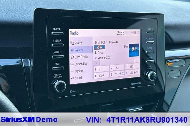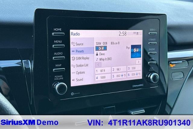 CARFAX One-Owner. Clean CARFAX. Celestial Silver Metallic 2024 Toyota Camry LE FWD 8-Speed Automatic 2.5L I4 DOHC 16V CARFAX ONE OWNER, NON-SMOKER, Backup Camera, Bluetooth®, Alloy Wheels, Aluminum Wheels, Light Package, Power Mirror Package, Power Package, Camry LE, 4D Sedan, 2.5L I4 DOHC 16V, 8-Speed Automatic, FWD, Ash w/Fabric Seat Trim, 4-Wheel Disc Brakes, 6 Speakers, ABS brakes, Air Conditioning, Alloy wheels, AM/FM radio: SiriusXM, Apple CarPlay/Android Auto, Auto High-beam Headlights, Automatic temperature control, Brake assist, Bumpers: body-color, Delay-off headlights, Driver door bin, Driver vanity mirror, Dual front impact airbags, Dual front side impact airbags, Electronic Stability Control, Emergency communication system: Safety Connect (1-year trial), Exterior Parking Camera Rear, Fabric Seat Trim, Four wheel independent suspension, Front Bucket Seats, Front Center Armrest, Front dual zone A/C, Front reading lights, Fully automatic headlights, Illuminated entry, Knee airbag, Low tire pressure warning, Occupant sensing airbag, Outside temperature display, Overhead airbag, Overhead console, Panic alarm, Passenger door bin, Passenger vanity mirror, Power door mirrors, Power driver seat, Power steering, Power windows, Radio data system, Radio: Audio, Rear seat center armrest, Rear side impact airbag, Rear window defroster, Remote keyless entry, Security system, Speed control, Speed-sensing steering, Split folding rear seat, Steering wheel mounted audio controls, Tachometer, Telescoping steering wheel, Tilt steering wheel, Traction control, Trip computer, Variably intermittent wipers, Wheels: 17 x 7.5J Alloy.